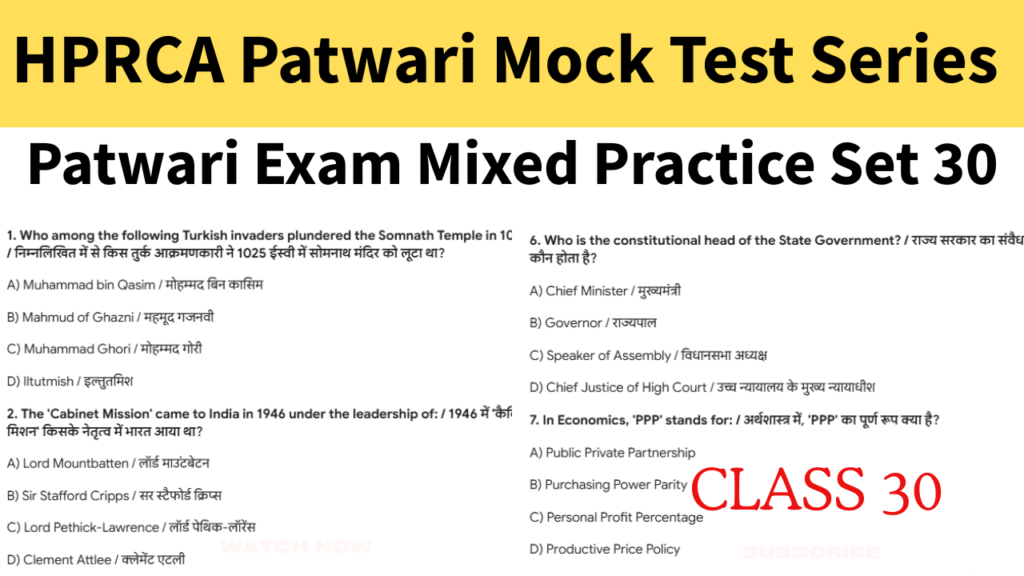 पटवारी परीक्षा मिश्रित अभ्यास सेट 30 (30 MCQs)